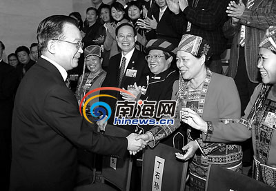 南海網(wǎng)3月9日消息:今天中午12時02分,海南代表團19位代表走出人民大會堂,沐浴著北京明媚的春光,激情滿懷。就在5分鐘前,在海南廳,他們剛剛握別溫家寶總理,親身感受了總理對海南的關(guān)愛:支持海南經(jīng)濟社會發(fā)展有利于全局;親耳聆聽了總理對海南的厚望:要把海南建設(shè)成為綠色之島、開放之島、文明之島與和諧之島。