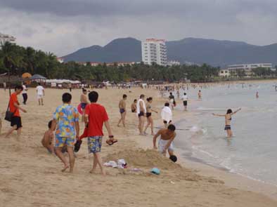 面對(duì)謠言,三亞市民、游客不屑一顧。圖為大東海依然游人如織