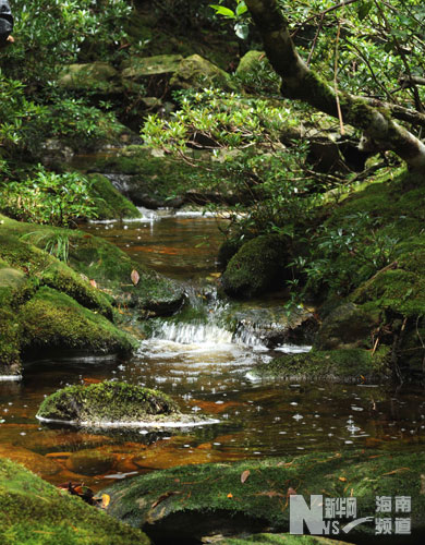 流淌在云霧林中海拔1300多米處的一條小河,整條河流河床的巖石、河邊的樹木上都生滿了苔蘚(攝于9月8日)。