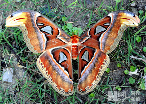 色彩艷麗的大皇蛾,這是世界上體形最大的蛾類,雙翅展開可達(dá)25厘米以上(攝于6月27日)。