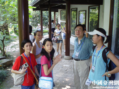 副團(tuán)長(zhǎng)諸大明正在和臺(tái)灣學(xué)子交流參觀書(shū)院心得
