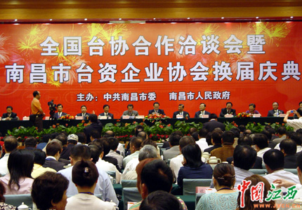 22日上午,全國臺協(xié)合作洽談會暨南昌市臺資企業(yè)協(xié)會換屆慶典在江西飯店舉行。圖為慶典現(xiàn)場。(中國江西新聞網(wǎng)記者 王凱 攝)