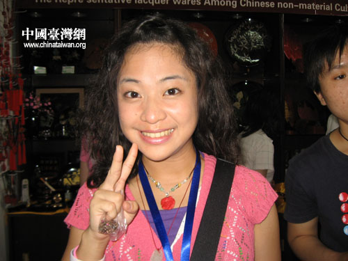在剪紙坊,許多臺灣的女學生對這門細致而精巧的藝術贊嘆不已,拿起工作間展出的剪紙作品左看右看,愛不釋手。最后,幾個學生還要求師傅現場為她們剪了一對鳳凰。師傅一邊和學生們聊天,一邊動手剪紙,臺灣學生連忙請師傅專心剪紙,害怕自己的鳳凰被剪壞。師傅笑著說:放心吧,沒問題。最后,看到一對展翅欲飛的鳳凰完好地展現在自己面前,臺灣學生嘖嘖稱奇,連忙購買收藏。