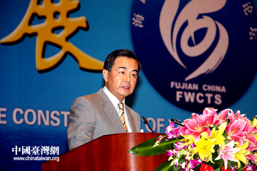 中共中央臺(tái)辦、國(guó)務(wù)院臺(tái)辦主任王毅在7日舉行的第三屆“海峽西岸經(jīng)濟(jì)區(qū)論壇”開幕式上發(fā)表演講并受權(quán)宣布促進(jìn)兩岸交往的新措施(攝 李徽)