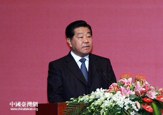 圖:賈慶林在兩岸農(nóng)漁水利合作交流會上致辭