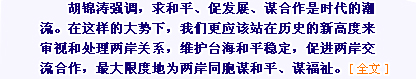 胡錦濤就兩岸“三通”講話。兩岸春節(jié)包機航班確定。贈臺大熊貓乳名揭曉。