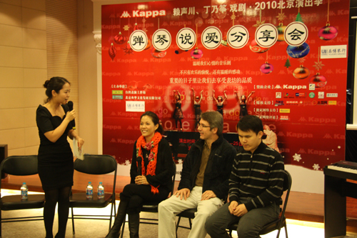 中國(guó)臺(tái)灣網(wǎng)12月26日北京消息 臺(tái)灣表演工作坊作品《彈琴說(shuō)愛(ài)》于平安夜在北京上演,圣誕當(dāng)天主創(chuàng)丁乃箏攜主演范德騰、許哲誠(chéng)在北京樂(lè)博琴行舉行觀劇分享會(huì),與觀眾和媒體共同分享《彈琴說(shuō)愛(ài)》的由來(lái),以及對(duì)于音樂(lè)、顏色、生命的理解與感動(dòng)。
