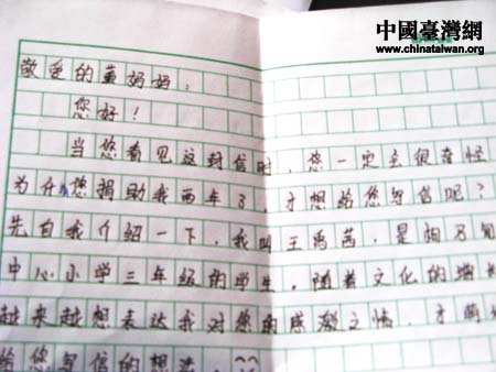 孩子們寫給董淑貞的感謝信。圖片來(lái)源:撫順市臺(tái)辦