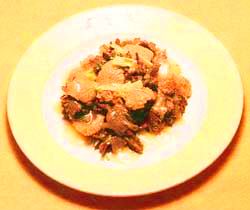 “油爆雙脆”是山東歷史悠久的傳統(tǒng)名菜。相傳此菜始于清代中期,為了滿足當(dāng)?shù)剡_(dá)官貴人的需要,山東濟(jì)南地區(qū)的廚師以豬肚尖和雞胗片為原料,經(jīng)刀工精心操作,沸油爆炒,使原來必須久煮的肚頭和胗片快速成熟,口感脆嫩滑潤,清鮮爽口。該菜問世不久,就聞名于市,原名“爆雙片”,后來顧客稱贊此菜又脆又嫩,所以改名為“油爆雙脆”。到清代中末期,此菜傳至北京、東北和江蘇等地,成為中外聞名的山東名菜。