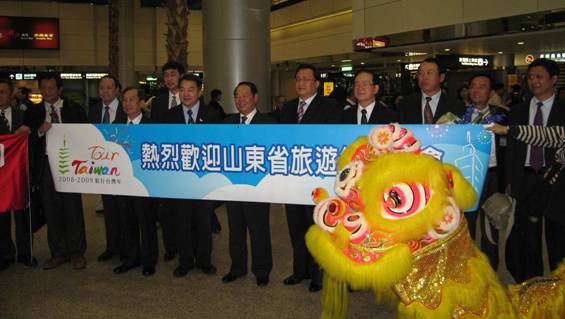 4月7日19:00 山航SC 4085航班平穩(wěn)地降落在臺(tái)北桃園國(guó)際機(jī)場(chǎng),當(dāng)于沖局長(zhǎng)、孫述濤市長(zhǎng)等走出飛機(jī)艙口時(shí),受到臺(tái)灣觀光協(xié)會(huì)張學(xué)勞會(huì)長(zhǎng)、臺(tái)灣兩岸觀光協(xié)會(huì)謝謂君副會(huì)長(zhǎng)等的熱烈歡迎。臺(tái)灣邀請(qǐng)單位在機(jī)場(chǎng)舉行歡迎儀式,歡迎山東省旅游交流團(tuán)等團(tuán)組來(lái)臺(tái)交流考察。