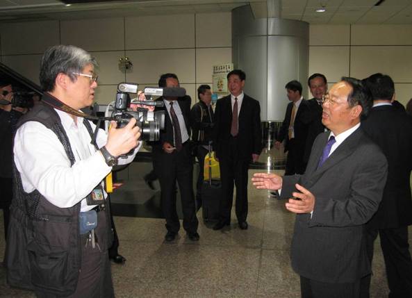 山東省旅游局于沖局長在桃園機(jī)場接受臺灣《聯(lián)合報(bào)》記者采訪
