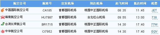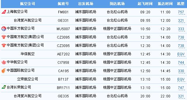 大陸(各省市)至臺(tái)灣航班情況