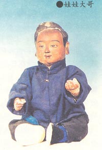 當(dāng)時(shí)拴娃娃有兩種形式:一是較富裕的人家的婦女多由道士陪伴,在眾多的泥娃娃中選一個(gè)拴回家,同時(shí)留下為數(shù)可觀的香資。二是生活較貧窮的人家則要背著道士悄悄地偷一個(gè)揣在懷里帶回家。有錢(qián)也好,無(wú)錢(qián)也罷,道士只是睜一眼閉一眼。因此,這種風(fēng)俗也叫“偷娃娃”。無(wú)論采取哪一種方式,人們?cè)谒┩尥迺r(shí)都要默念提前為娃娃起的乳名,說(shuō):“XX,跟媽媽(或者是奶奶、姥姥)回家吧!”帶回家后將小泥娃娃放在臥室內(nèi)炕角邊0,不能壓著、磕著、碰著,也不能晾著,要用紅布蓋好。一旦婦女懷孕生下孩子后,方可將小泥娃娃拿出來(lái),先得去天后宮還愿,即事先要在洗娃娃莊塑九十九個(gè)同樣大小的小泥娃娃送還給送子娘娘像前,然后將自己拴走的小泥娃娃重新加泥塑成更大一些的,帶回家中并在神佛龕旁邊供養(yǎng)起來(lái),將其視為自己的長(zhǎng)子,而自己親生的兒女則要排行老二。因此泥娃娃也稱“娃娃大哥”或“娃娃哥”。每天吃飯時(shí),做家長(zhǎng)的還要在娃娃大哥的像前放置食物碗筷,年節(jié)時(shí)還要為其添置新衣服。而且每年還再到洗娃娃莊去“洗”一次娃娃,即為塑像重新加大,視為長(zhǎng)了一歲。年復(fù)一年,娃娃大哥的形象從穿兜兜的小兒一直要“長(zhǎng)”到留胡須的老者。與此同時(shí),隨著其真弟妹的長(zhǎng)大,成家立業(yè),生兒育女,娃娃大哥的輩份也隨之增長(zhǎng),由娃娃大哥升為娃娃大爺、娃娃大舅、娃娃爺爺、直至太爺……倘若父母相繼亡故,娃娃大哥要由真弟弟一代一代地傳下去,永遠(yuǎn)供養(yǎng)著,因?yàn)槿藗冋J(rèn)為所有的子孩都是由“他”帶來(lái)的。