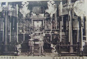 另外,天津的妓女來(lái)天后宮的祈禱也曾獨(dú)成一景。當(dāng)時(shí),除農(nóng)歷初一、十五外,每到臘月大年三十夜里,便是妓女到天后宮叩拜神靈的日子。民國(guó)二十年(公元1931年)出版的《天津志略》中有“舊歷元旦,各娼妓祝禱于此,粉紅黛綠,滿院光輝”的記截。對(duì)妓女來(lái)此燒香還有不成文的規(guī)定,在時(shí)間上要求即在天明前必須離開(kāi)天后宮。在穿著上也有定例:二、三等妓院的妓女們,要穿上紅襖褲,蹬上紅銹鞋,套上紅裙子,披上紅斗篷,圍上紅圍脖,別上紅絨花,渾身上下用紅顏色裝扮一新,有文人戲稱之為“滿堂紅”。當(dāng)然,由于社會(huì)的黑暗,妓女們始終生活在社會(huì)最底層,直到新中國(guó)成立。