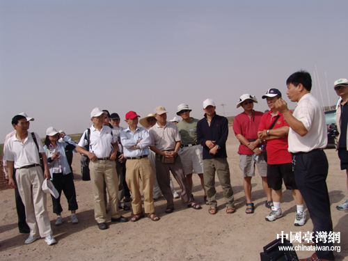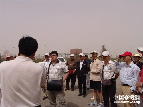 7月10日,在寧夏參加“海峽兩岸記者聯(lián)合采訪活動”的兩岸記者一行參觀采訪吳忠市太陽山工業(yè)園。圖為兩岸記者在太陽山水庫聽取講解。