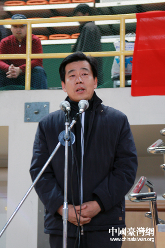 國(guó)臺(tái)辦經(jīng)濟(jì)局副局長(zhǎng)劉軍川宣布第三屆北京“臺(tái)商杯”球類比賽開幕(鐘寶華 攝)