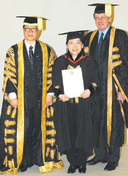 一年后,鄧亞萍面對嚴(yán)格的考官,用英語宣讀了3萬5千字的論文——《從小腳女人到奧運(yùn)冠軍》。以翔實生動的材料和清晰有力的論點論述了中國婦女及中國婦女體育的巨大發(fā)展和變化。臨場考官的一致結(jié)論是:無條件一次通過!2002年12月22日,她如愿獲得碩士學(xué)位。薩馬蘭奇先生稱贊她“擁有了打開世界大門的鑰匙”。