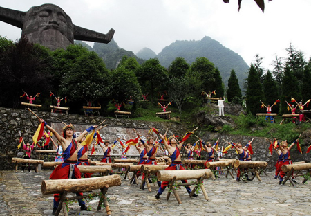 有關(guān)部門目前正在攝制的《神農(nóng)架梆鼓敲起來》是一首優(yōu)美的山水詩,一幅多彩的山水畫。它用詩一般的節(jié)奏,多姿多彩的舞蹈,藝術(shù)地再現(xiàn)了神農(nóng)架秀麗的自然風(fēng)光,厚重的人文歷史,讓我看到了神農(nóng)架人民勞動、生活、愛情的生動畫面。(王均學(xué) 攝)