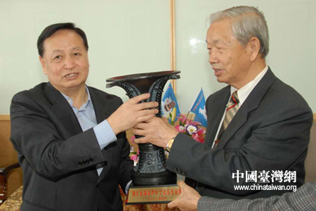 湖北省委書記羅清泉向臺北湖北同鄉(xiāng)會贈送禮品。(中國臺灣網(wǎng)湖北通訊員 陸勝 攝)