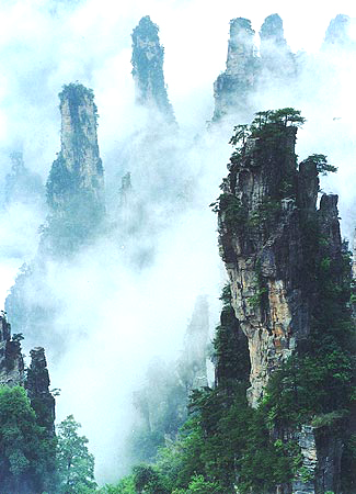 武陵源風(fēng)景區(qū)位于湖南省西北部,由張家界市的張家界森林公園、慈利縣的索溪峪自然保護(hù)區(qū)和桑植縣的天子山自然保護(hù)區(qū)組合而成,總面積500平方公里。最近又發(fā)現(xiàn)楊家界新景區(qū)。武陵源風(fēng)景區(qū)是80年代初“新發(fā)現(xiàn)”的“養(yǎng)在深閨人未識”的深山明珠。這里的砂巖峰林千奇百怪,似人似物,惟妙惟肖,在那靜謐的幽谷里,沒有任何人工雕鑿,有的是石柱石峰、斷崖絕壁、古樹名木、云氣煙霧、鳥鳴蟬噪、流泉飛瀑、珍禽異獸,人行其間,猶如到了一個神奇的世界和風(fēng)味天成的藝術(shù)山水長廊。