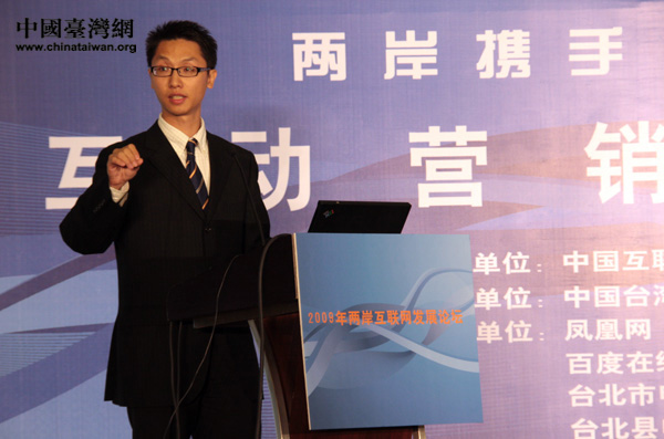 中國臺灣網(wǎng)7月8日北京消息 作為2009年兩岸互聯(lián)網(wǎng)發(fā)展論壇活動之一的互動營銷及網(wǎng)絡廣告分論壇,7日下午在北京舉行。仙蹤林集團營運總監(jiān)林太一在論壇上發(fā)表演講并接受了記者的專訪。他認為互聯(lián)網(wǎng)是兩岸的一個“傳教士”,可以比任何的方式都更快、更經濟、更直觀、更有效地把思想信息傳播開來,互聯(lián)網(wǎng)交流是兩岸交流中必不可少的一種方式。