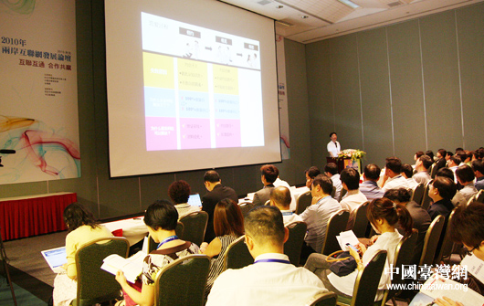 2010兩岸互聯(lián)網(wǎng)發(fā)展論壇6日下午進(jìn)行分場(chǎng)討論。在以“互聯(lián)網(wǎng)服務(wù)”為主題的分論壇中,兩岸互聯(lián)網(wǎng)企業(yè)相關(guān)負(fù)責(zé)人分別就垂直整合與互聯(lián)網(wǎng)服務(wù)、3G時(shí)代網(wǎng)絡(luò)應(yīng)用和移動(dòng)互聯(lián)網(wǎng)的機(jī)遇三個(gè)主題做專題發(fā)言。(中國(guó)臺(tái)灣網(wǎng)發(fā))