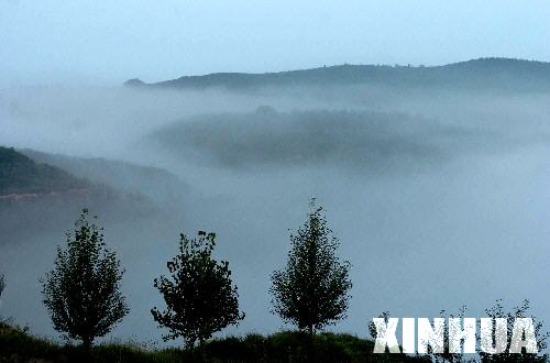 清晨的吳起縣楊青流域內(nèi),山峰被云海淹沒(圖片來源:新華網(wǎng))