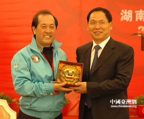湖南省臺辦主任龔文密及部分湖南省政府領(lǐng)導(dǎo)、省臺辦領(lǐng)導(dǎo)參加了會見。會見后,雙方互贈了禮物,隨后湖南省人民政府設(shè)歡迎晚宴,招待遠道而來的寶島貴客。(李杰)