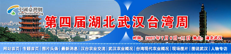 2007年4月5日 武漢市與臺灣有關方面達成八大農(nóng)業(yè)合作項目意向,涉及水產(chǎn)、茶葉、花卉等產(chǎn)業(yè)。