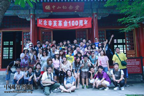兩岸青年學(xué)生“追尋歷史的足跡”參訪團(tuán)在香山孫中山紀(jì)念堂前合影留念。