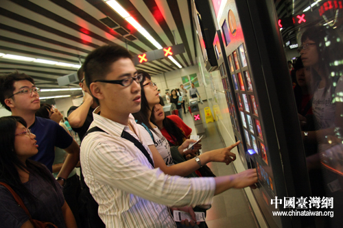 在北京亮馬橋地鐵站,臺灣同學(xué)正在打印餐廳優(yōu)惠券。(中國臺灣網(wǎng) 王偉 攝)