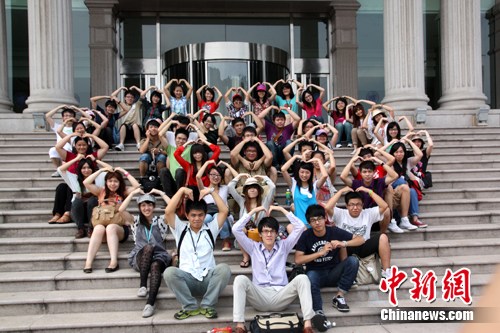 兩岸青年在復(fù)旦大學(xué)校園合影。中新網(wǎng)發(fā) 胡雨晴 攝