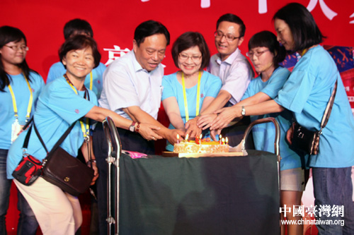 中國臺灣網(wǎng)7月14日北京消息 7月13日晚,全國臺聯(lián)臺胞青年千人夏令營營員們赴北京大學(xué)交流,臺胞青年與北大學(xué)子攜手舉行了豐富多彩的聯(lián)歡活動。全國臺聯(lián)會長梁國揚(yáng)出席聯(lián)歡活動,并上臺與13日當(dāng)天過生日的臺胞青年共同慶祝。