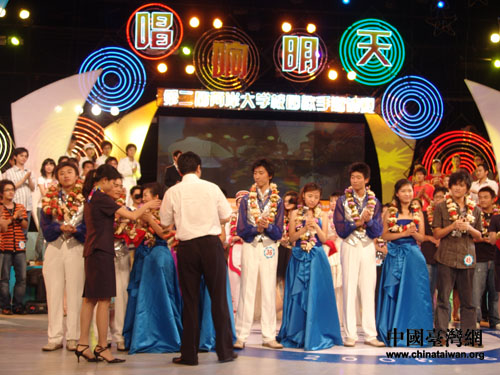 中國臺灣網(wǎng)06年8月7日廈門消息 作為此次兩岸青年聯(lián)歡節(jié)活潑而又精彩的內(nèi)容,由中華全國學(xué)生聯(lián)合會主辦,福建省學(xué)生聯(lián)合會、臺灣中華青年交流協(xié)會、廈門市學(xué)生聯(lián)合會承辦的第二屆“唱響明天”兩岸大學(xué)校園歌手邀請賽于8月6日晚在廈門電視臺演播室圓滿落下帷幕。