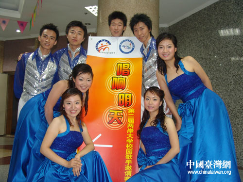 天津大學(xué)的北洋組合,用他們自己的話講,自始至終就給人們很好奇的感覺。因?yàn)樗麄兪撬哪兴呐巳藚⑴c的大組合,而且是按照聲部各有分工的組合在一起。而他們八個(gè)人的默契配合則與平時(shí)彼此長期在一起磨合練習(xí)分不開。當(dāng)記者采訪他們時(shí),他們由衷地向記者流露出對(duì)母校北洋合唱團(tuán)的感謝,因?yàn)樗麄冋J(rèn)為是合唱團(tuán)給了他們一種合唱的意識(shí)。談到幾天以來他們同臺(tái)灣學(xué)子們同臺(tái)競技合作的經(jīng)歷,他們一致表示,彼此間合作大于競爭,彼此間會(huì)坦誠地交換意見,互相鼓勵(lì)。