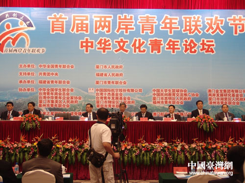在首屆兩岸青年聯(lián)歡節(jié)開幕式暨“中華文化青年論壇”上,全國(guó)人大常委會(huì)副委員長(zhǎng)許嘉璐作了主旨演講,中共福建省委書記盧展工發(fā)了賀信,團(tuán)中央書記處第一書記周強(qiáng)、福建省省長(zhǎng)黃小晶、國(guó)務(wù)院臺(tái)辦副主任葉克冬等分別致辭。