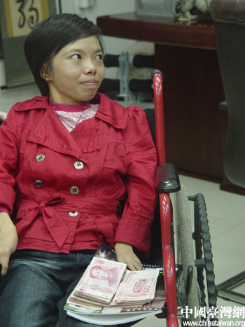 中國(guó)臺(tái)灣網(wǎng)9月30日貴陽(yáng)消息 9月28日上午,手腳高度殘疾的年輕女子吳雪飛坐著輪椅,在同為殘障人士的未婚夫及親友的陪同下,帶著以口含筆的畫(huà)作和深情洋溢的感謝信來(lái)到貴陽(yáng)市臺(tái)協(xié)會(huì)長(zhǎng)、貴州藍(lán)氏關(guān)系企業(yè)董事長(zhǎng)藍(lán)贊登先生的辦公室,感謝藍(lán)先生五年前慷慨解囊,饋贈(zèng)電腦,使她找到了愛(ài)情且將于中秋前夕喜結(jié)連理。此時(shí)的吳雪飛不會(huì)想到,她的知恩感恩,使她得到了更多意想不到的幫助。