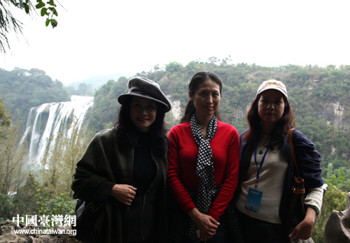 進(jìn)入黃果樹瀑布景區(qū)后,臺灣嘉賓一路不停地直奔瀑布,從聽瀑到觀瀑的小段路程似乎都覺得漫長,一直問,“怎么還沒到?”聽導(dǎo)游講,目前已接近枯水時節(jié),黃果樹大瀑布和一個星期前來看,都不一樣,此時有種“瘦”之美。嘉賓們紛紛約定下次漲水時節(jié)時再來看一次。“漲水時節(jié),如蛟龍翻騰、浪花飛濺、水珠飛揚(yáng),直瀉瀑布下的犀牛潭;枯水時節(jié),瀑布猶如萬縷銀絲披掛、輕柔多姿、又是另一番風(fēng)情!