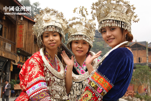 與苗寨姑娘合影留念(中國臺灣網(wǎng) 楊永青 攝)