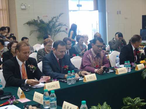 法國駐武漢總領(lǐng)事費勇先生,芬蘭瓦市市政會主席帕卡雅維寧先生,以及臺灣詠倡集團總裁田珍瑞等臺商、外商代表在開幕式上分別致辭。來自法國、芬蘭、美國、新加坡、馬來西亞、荷蘭、日本等國及港澳臺地區(qū)的友人和客商280余人蒞臨會議,暢敘合作友誼,共謀發(fā)展大計。3000余名各界群眾參加了開幕式。