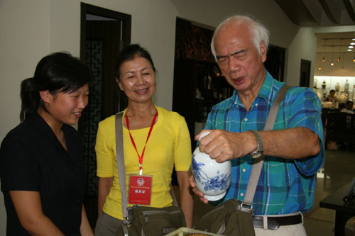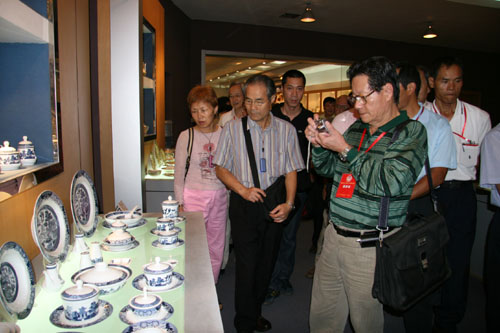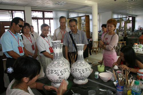 中國(guó)臺(tái)灣網(wǎng)8月30日景德鎮(zhèn)消息 剛剛參加完2007贛臺(tái)(南昌)經(jīng)貿(mào)合作研討會(huì)的臺(tái)灣區(qū)電信工程同業(yè)公會(huì)前理事長(zhǎng)、大吉電話材料有限公司董事長(zhǎng)廖大吉和臺(tái)北市臺(tái)海兩岸經(jīng)貿(mào)文教交流協(xié)會(huì)榮譽(yù)理事長(zhǎng)、百徽股份有限公司董事長(zhǎng)楊祥傳等35名臺(tái)商客人,今天下午在景德鎮(zhèn)臺(tái)辦領(lǐng)導(dǎo)等人陪同下,先后到當(dāng)?shù)刂沾善髽I(yè)--景德鎮(zhèn)陶瓷股份有限公司,景德鎮(zhèn)雕塑瓷廠以及景德鎮(zhèn)國(guó)際陶瓷文化交流中心參觀考察。(黃建文)