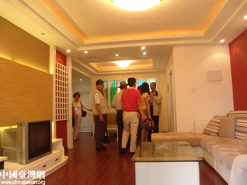 隨后,參訪團(tuán)一行對(duì)村民居住情況進(jìn)行了實(shí)地考察。進(jìn)入當(dāng)?shù)鼐用窦抑校瑏?lái)自臺(tái)灣中南部的鄉(xiāng)鎮(zhèn)長(zhǎng)及民意代表被室內(nèi)環(huán)境和格局深深吸引。當(dāng)聽到當(dāng)?shù)胤績(jī)r(jià)每平米只需800元人民幣時(shí),大家都羨慕不已,表示有機(jī)會(huì)一定要在這里購(gòu)置一套住房。