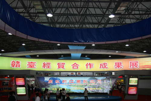 中國臺灣網(wǎng)8月30日江西消息 2007贛臺經(jīng)貿研討會于8月28日-9月2日在江西南昌舉辦。有千余臺商及臺灣商界人士與會。29日上午舉行了“贛臺經(jīng)貿合作成果展”啟動儀式。該圖為成果展現(xiàn)場。(攝影:邵填)