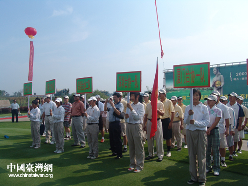 中國(guó)臺(tái)灣網(wǎng)9月1日南昌消息 昨日,作為“首屆中國(guó)南昌臺(tái)灣周活動(dòng)”的一部分,“第二屆中國(guó)南昌海峽兩岸工商精英高爾夫球賽”在美麗的“銘雅歐洲城”隆重舉辦。全國(guó)各地臺(tái)協(xié)代表、臺(tái)灣知名企業(yè)代表等共8支球隊(duì),60余位嘉賓共聚于此。南昌市常務(wù)副市長(zhǎng)王詠、南昌市副市長(zhǎng)盧曉健、南昌市臺(tái)協(xié)會(huì)長(zhǎng)陳良鑒在開(kāi)幕式上致辭。