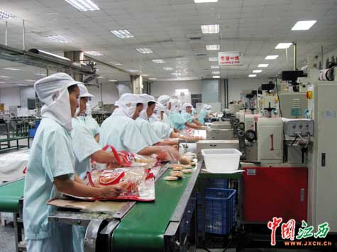 在上工前,工人們要經(jīng)過(guò)三道清潔關(guān)的檢驗(yàn),方可入內(nèi)操作。(江西網(wǎng) 王建亮 攝)