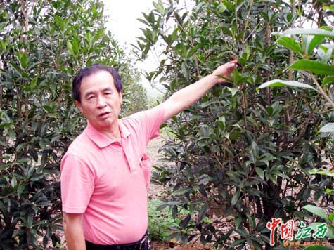 正是丹桂飄香時(shí),江文龍幾乎每天都在山上,生活在丹桂園里。(江西網(wǎng) 王建亮 攝)