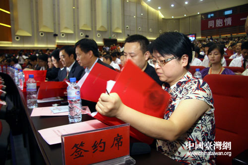 中國臺灣網(wǎng)9月22日南昌消息 2008贛臺(南昌)經(jīng)貿(mào)合作研討會今日在南昌正式開幕。記者在贛臺經(jīng)貿(mào)研討會的簽約儀式上獲悉,本屆“贛臺會”江西省簽約項(xiàng)目共68個(gè),簽約金額12.5億美元。項(xiàng)目主要涉及電子家電、金屬及五金機(jī)械、物流及現(xiàn)代服務(wù)業(yè)、紡織服裝、農(nóng)業(yè)產(chǎn)業(yè)化及食品加工、旅游業(yè)等行業(yè)。較大的項(xiàng)目有: