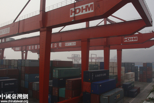 寸灘水港碼頭集裝箱正在裝卸(中國臺(tái)灣網(wǎng) 程軼文攝)