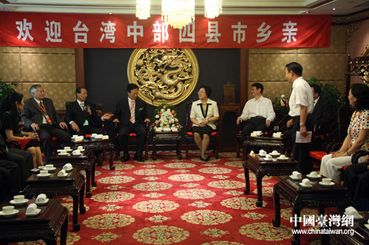 6月27日,全國(guó)政協(xié)副主席、臺(tái)盟中央主席林文漪在京會(huì)見(jiàn)了前來(lái)出席“臺(tái)灣中部四縣市農(nóng)特產(chǎn)品暨觀光展覽”的四縣市負(fù)責(zé)人一行。(中國(guó)臺(tái)灣網(wǎng) 鐘寶華 攝)