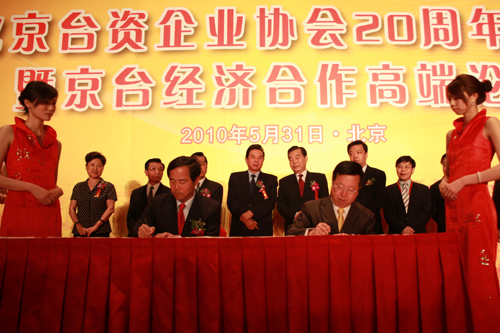 中國臺灣網(wǎng)5月31日北京消息 北京臺資企業(yè)協(xié)會成立二十周年慶典活動暨京臺經(jīng)濟(jì)合作高端論壇31日在京舉行,北京臺協(xié)與臺灣省農(nóng)會、“中國生產(chǎn)力中心”、金屬研究中心、臺北企業(yè)經(jīng)理人協(xié)進(jìn)會和海峽救助協(xié)會等島內(nèi)團(tuán)體簽署了長期合作協(xié)議。